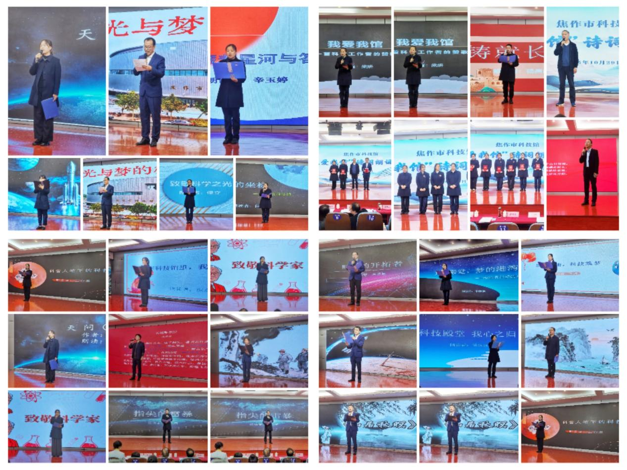比赛现场掌声不断,来自不同岗位的32位选手以饱满的热情和精湛的朗诵技巧,为观众呈现了一场视听盛宴。参赛作品主题鲜明,情感真挚,既有《洁心守馆,情系科技家》《光的殿堂,梦的港湾—献给我深爱的科技馆》等深情流露的原创篇章,生动诠释了科技馆人对本职岗位和科技事业的热爱与坚守;也有《天问》《江城子·飞天梦圆》等经典诗词的巧妙改编,展现了科技与文化创新结合的独特魅力;更有《缅怀杨振宁》《致敬科学之光》等礼赞科学先驱的动人诗稿,讴歌了科学家们探索真理、无私奉献的崇高精神。经过激烈角逐,最终评选出一等奖3名、二等奖5名、三等奖10名。